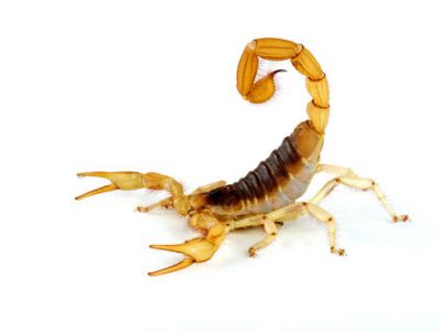 No son insectos. Son arácnidos. Se caracterizan por tener patas. Muchos se alimentan de insectos y pueden causar dolorosas picaduras inyectando veneno. Pueden encontrarse al interior de guantes, zapatos.